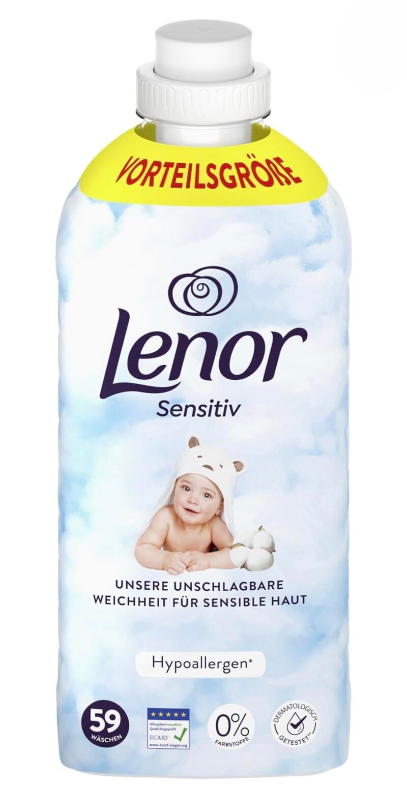 2X Lenor Sensitiv Weichspüler, Hypoallergen, 59 Waschladungen, Für Sensible Haut