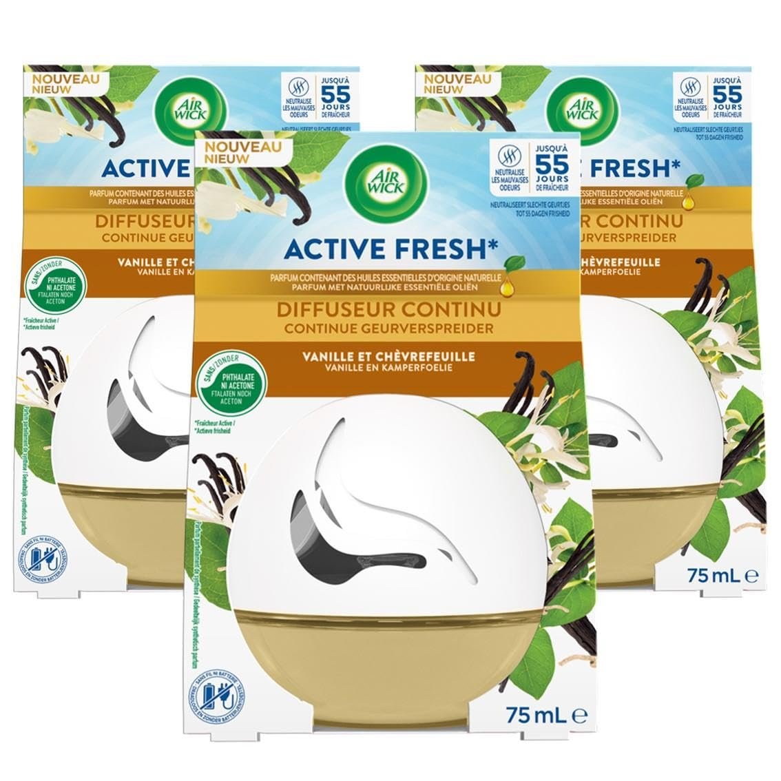 Air Wick 3 x Continus Active Fresh Duftspender Vanille – Flasche mit 75 ml