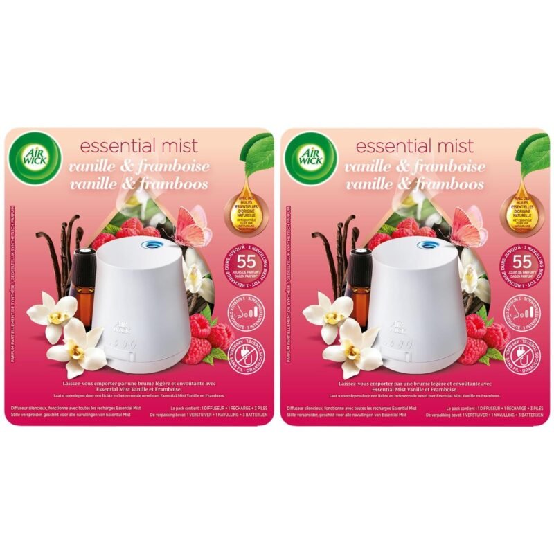 Air Wick Duftspender für ätherische Öle Essential Mist + 1 Nachfüllpack Vanille und Himbeere, 25 ml, 5 Stück