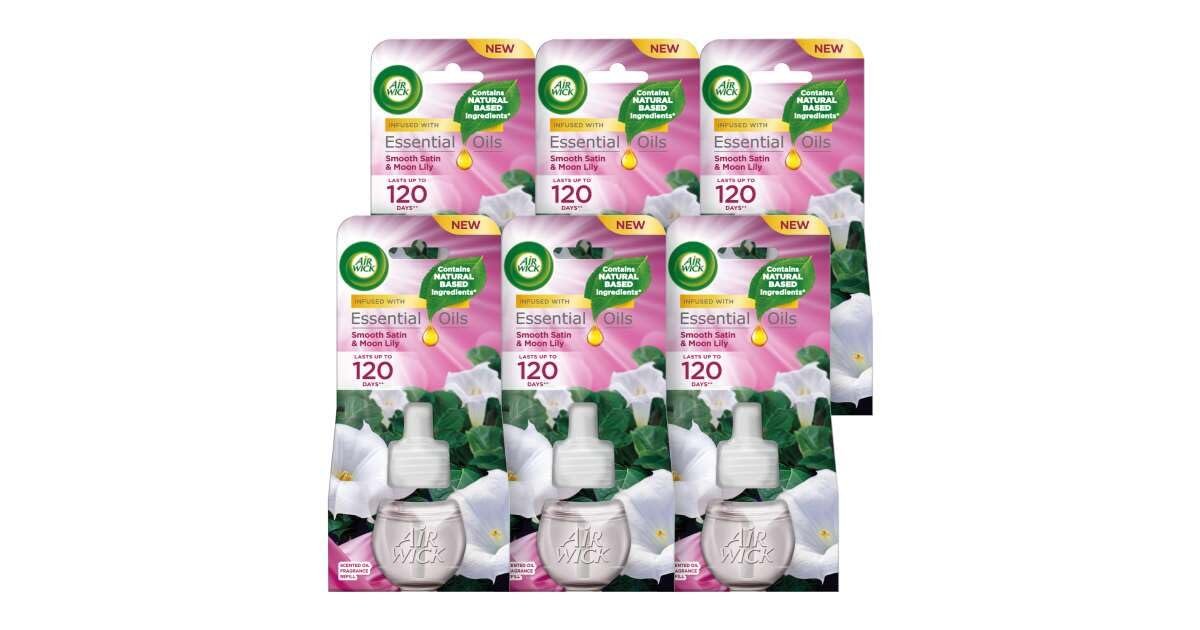 Air Wick Seide & Lilienfrische – Velvet Satin und Night Lily – Nachfüllpack für elektrische Lufterfrischer 6x19ml