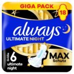 Always Damenbinden Ultimate Night (Größe 6) Mit Flügeln 18 Stück, Super Saugfähig, Für Die Periode
