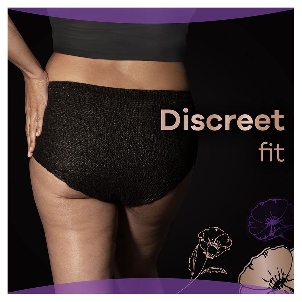 Always Discreet Boutique Inkontinenzunterhose für Damen, Große M, Schwarz, 18 hohe Saugfähigkeit Plus Pants (9 x 2 Packungen), Geruchsneutralisierer, Weichheit und Schutz, für empfindliche Blase