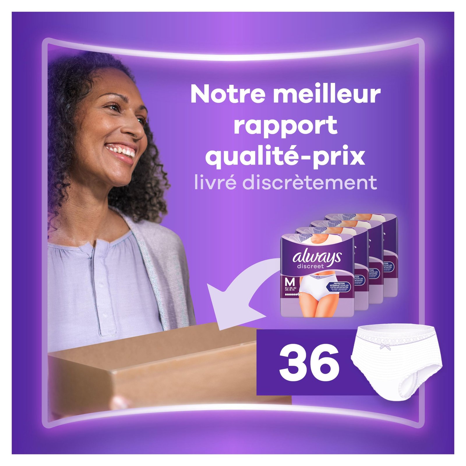 Always Discreet Inkontinenz-Höschen Für Frauen Plus M 36 Stück, Schliesst Gerüche Und Flüssigkeit sofort ein