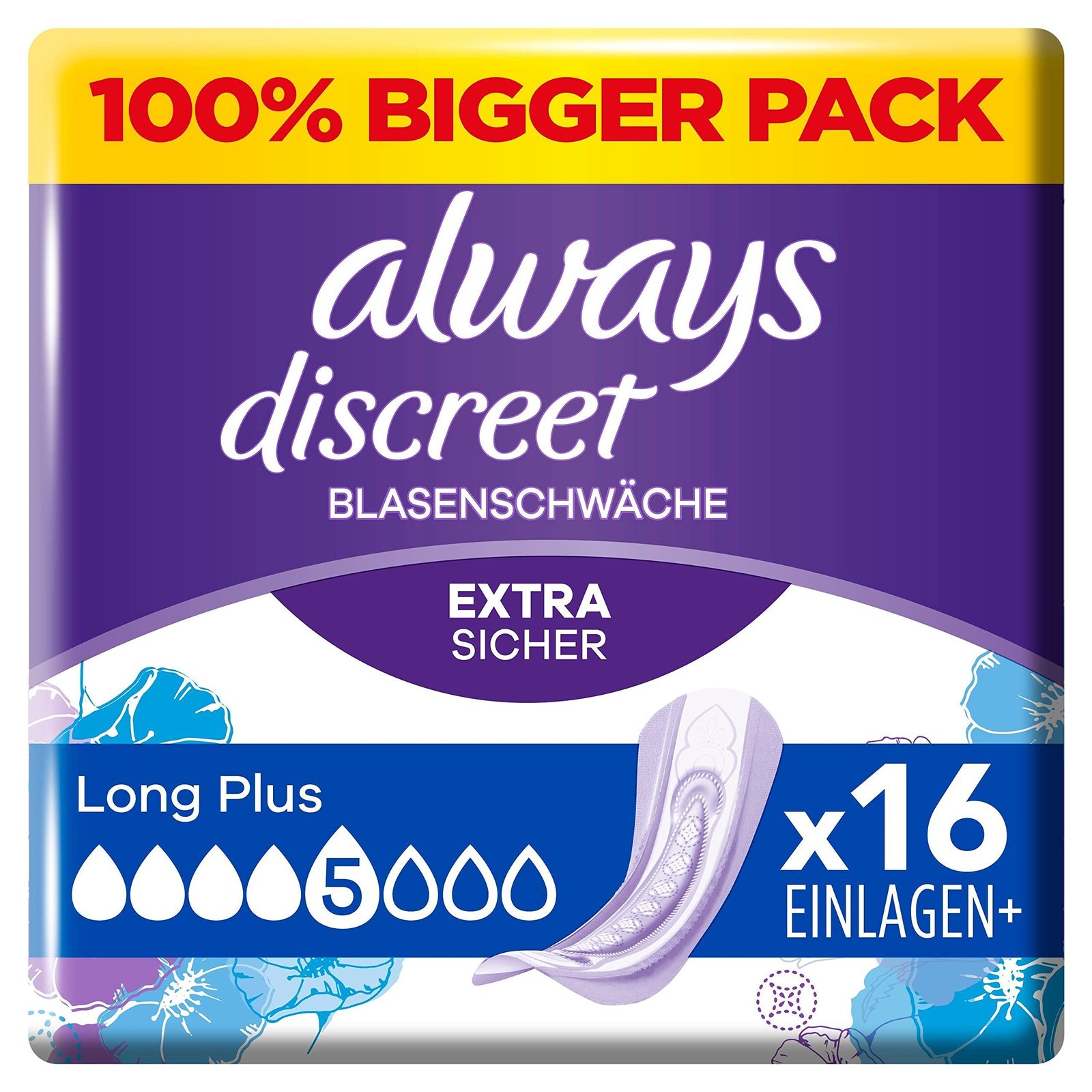 Always Discreet Inkontinenz-Slipeinlagen Damen, Long Plus (16 Binden) Big Pack, starker Schutz, den Sie kaum spüren