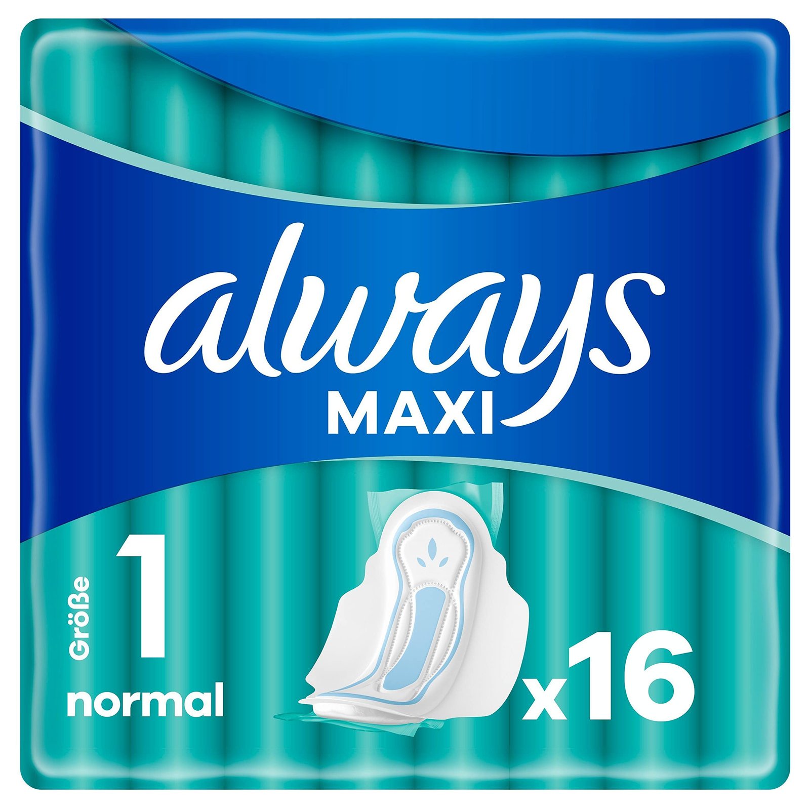 Always Maxi Binden Damen Gr. 1, Normal (16 Damenbinden mit Flügeln) weich und super saugfähig, geruchsneutralisierend und Auslaufschutz