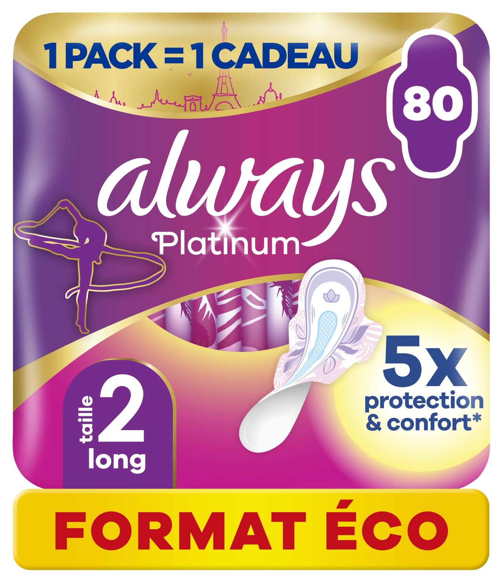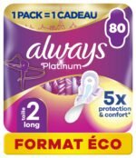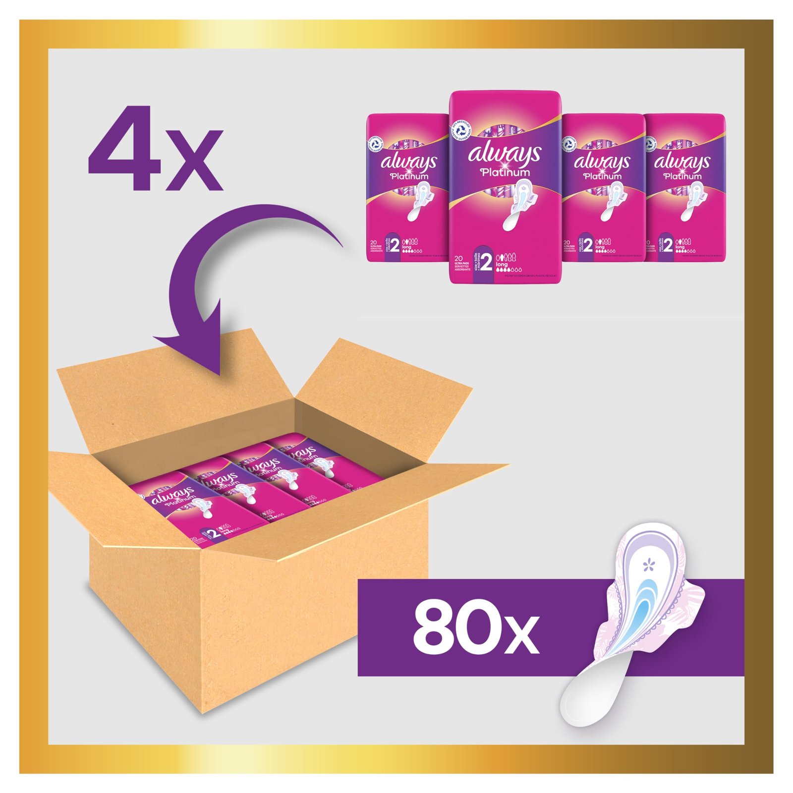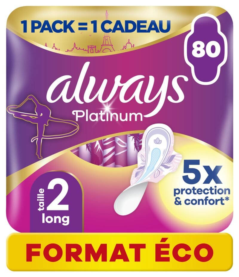 Always Platinum Damenbinden mit Flügeln Long Plus Medium Flow Eco Size 80 Einzeltaschen (4×20) 5 Komfortgroßen