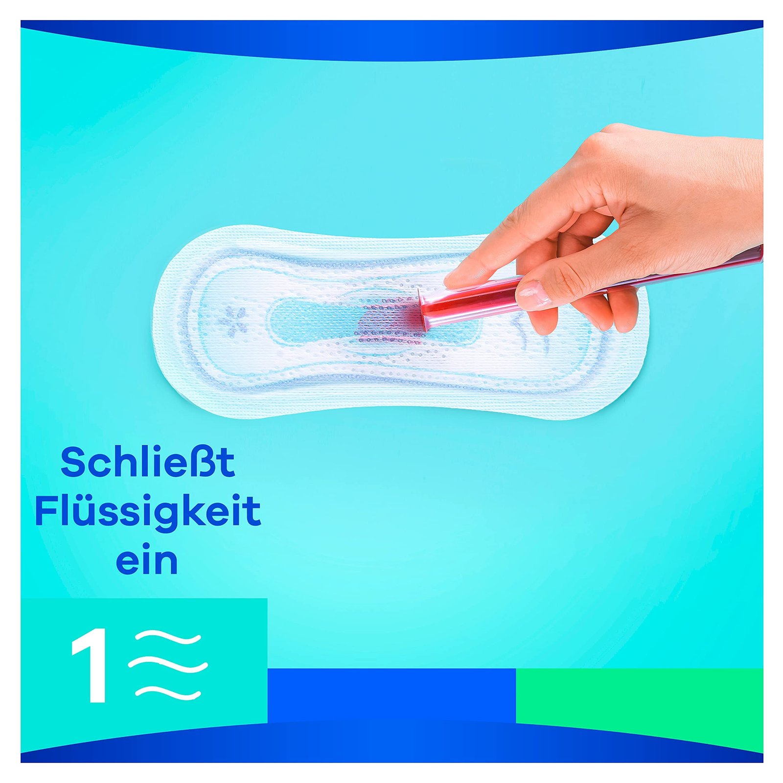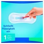 Der supersaugfähige Kern mit InstantDry-System absorbiert die Flüssigkeit in Sekunden|LeakGuards schließen die Flüssigkeit ein und helfen, Auslaufen zu verhindern|Die Odourlock-Technologie neutralisiert Gerüche|Die Hautverträglichkeit der Damenbinde wurde dermatologisch getestet