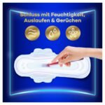 Damenbinden mit bis zu 10 Std. Schutz|Eine 60 % größere Rückseite als Ultra Normal Binden (Größe 1) für zusätzlichen Schutz während der ganzen Nacht|Die LeakGuard-Technologie schließt die Flüssigkeit ein und hilft, Auslaufen zu vermeiden|Der supersaugfähige Kern mit InstantDry-System absorbiert die Flüssigkeit in Sekunden|Die Odourlock-Technologie neutralisiert Gerüche|Dermatologisch von der Skin Health Alliance bestätigt|Die Flügel sorgen dafür, dass deine Binde dir einen bequemen, sicheren Schutz bietet|Packung aus 50 % recyceltem Plastik