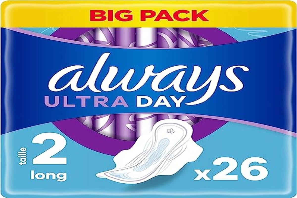 Always Ultra Damenbinden, Größe 2, lang, 26 Handtücher mit Flügeln, mittelstarker Tagesfluss, maximaler Komfort, super saugfähig und ultradünn