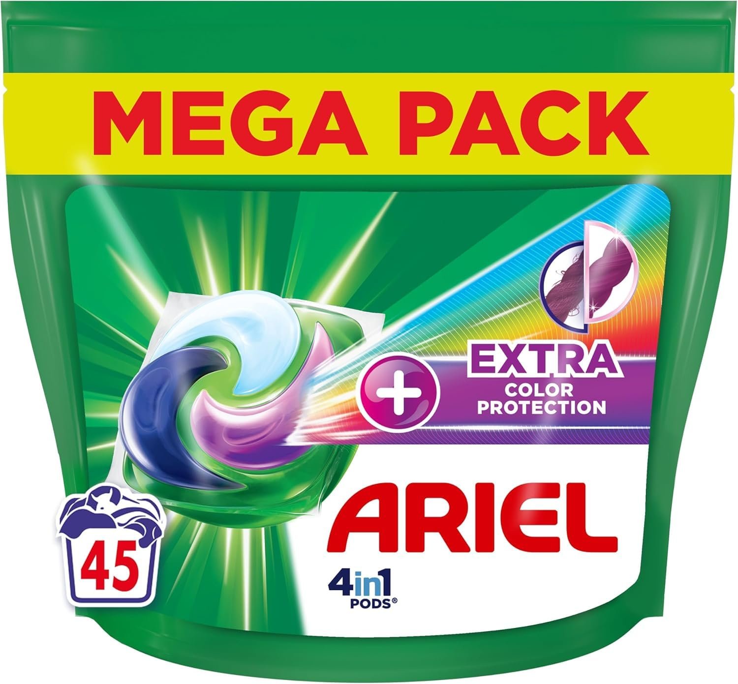 Ariel 4in1 PODS Waschmittel-Pods + zusätzlicher Farbschutz und Faserschutz – 45 Wäschen