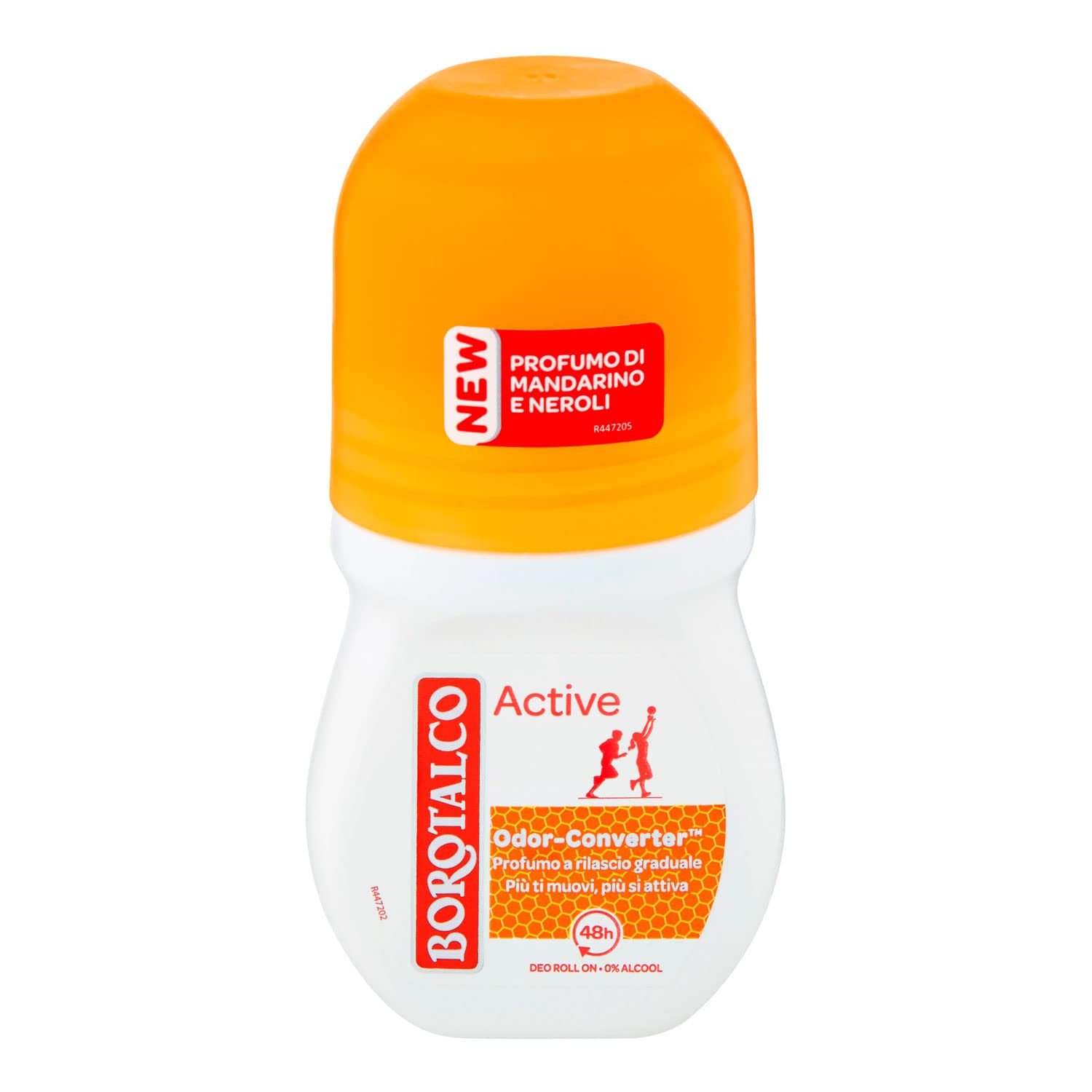 Borotalco, Roll-On Active Orange, alkoholfrei, mit Odor-Converter für Parfüm mit stufenloser Freisetzung und kontinuierlicher Frische, Duft von Mandarine und Neroli, Deodorant für Damen und Herren, 50 ml