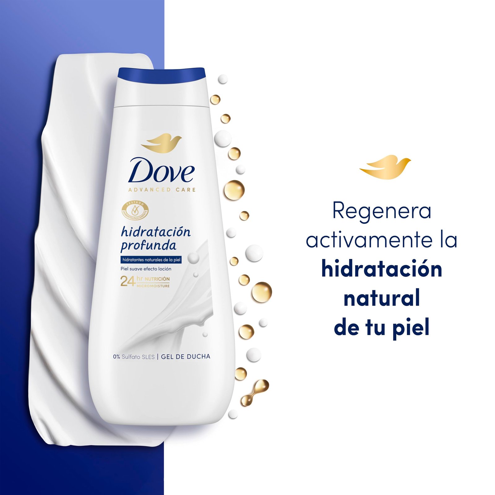 24 Stunden Pflege, jetzt aus Ihrer Dusche: Das Dove Advanced Care-Duschgel mit tiefer Feuchtigkeit reinigt sanft und spendet der Haut tiefe Feuchtigkeit, macht sie 24 Stunden lang seidig weich und gepflegt|Fühlen Sie Ihre Haut den ganzen Tag lang seidig glatt: Diese pflegende Formel enthält Millionen von feuchtigkeitsspendenden Mikrotropfen, die jeden Millimeter Ihrer Haut erreichen und mit Feuchtigkeit versorgen, für eine langanhaltende Ernährung den ganzen Tag|Duschen Sie Ihre Haut und verwöhnen Sie Ihre Sinne: Diese Formel für trockene Haut regeneriert aktiv die natürliche Feuchtigkeit der Haut und macht sie in nur einer Dusche weich und mit Feuchtigkeit versorgt|Narbend und sanft: Mit reichlich Schaum enthält diese Formel Reinigungsmittel natürlichen Ursprungs, natürliche Nährstoffe der Haut und ist frei von SLES-Sulfaten, was sie sanft zu Ihrer Haut und ihrem Mikrobiom macht