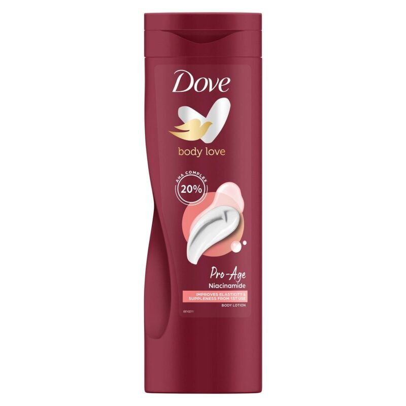 Dove Pro Age Nourishing Body Care Body Lotion enthält AHA, Olivenöl und Vitamin B3 für eine natürliche Hautverjüngung|Dove Feuchtigkeitspflege angereichert mit NutriDUO, um die tieferen Schichten der Haut zu pflegen|Eine Körpercreme, die die Haut 24 Stunden lang mit Feuchtigkeit versorgt und die trockene Haut bekämpft|Körperfeuchtigkeitspflege verbessert das Auftreten von dunklen Flecken und beschleunigt die Zellerneuerung|Dove Hautcreme revitalisiert reife Haut und lässt sie sich natürlich wiederherstellen|Dove Lotion nährt alternde Haut