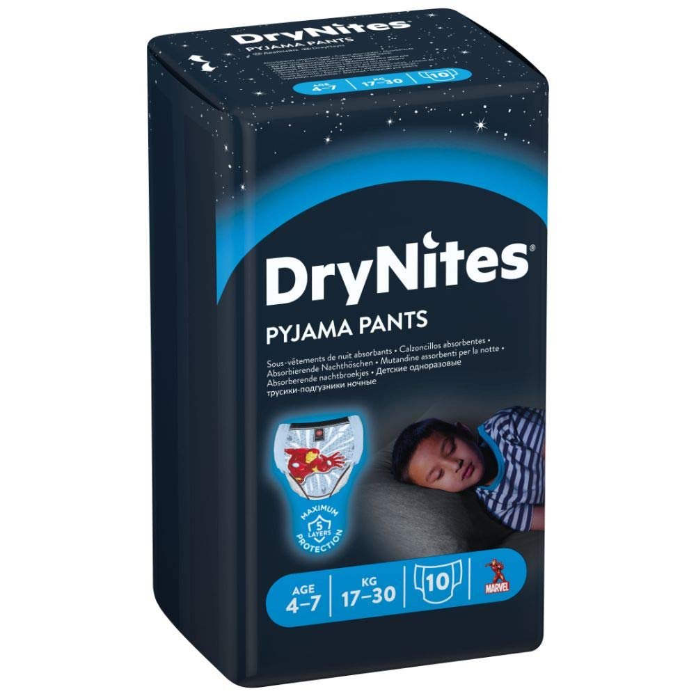 Starker Schutz in der Nacht – die hochabsorbierenden Windelhosen für Jungs (4 – 7 Jahre) verhindern das Auslaufen von Flüssigkeiten|Die Nachthöschen von Dry-Nites haben 5 saugfähige Schichten gegen Einnässen und besitzen eine spezielle Schutzzone extra für Jungs|Die dehnbaren Pyjama-Unterhosen schmiegen sich an den Körper des Kindes an und sind auch tagsüber bequem und diskret zu tragen|Fühlen sich an wie normale Unterwäsche mit tollem Disney Design. Geräuscharmes Material – dezentes, stoffähnliches geräuscharmes Material|Inhalt: Monatsbox mit 30 Windelpants passend für Kinder 4-7 Jahre (17- 30kg), idealer Vorteilspack