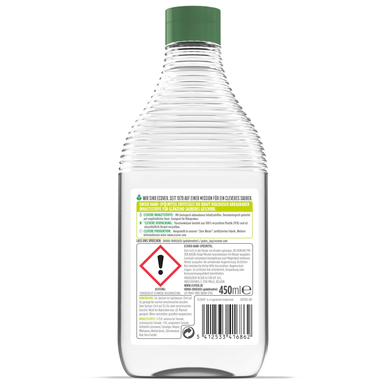 Ecover Spülmittel, stark gegen Fett und Schmutz, frischer Zitronen- und Aloe-Vera-Duft, für das Spülen von Hand, 1 x 450 ml