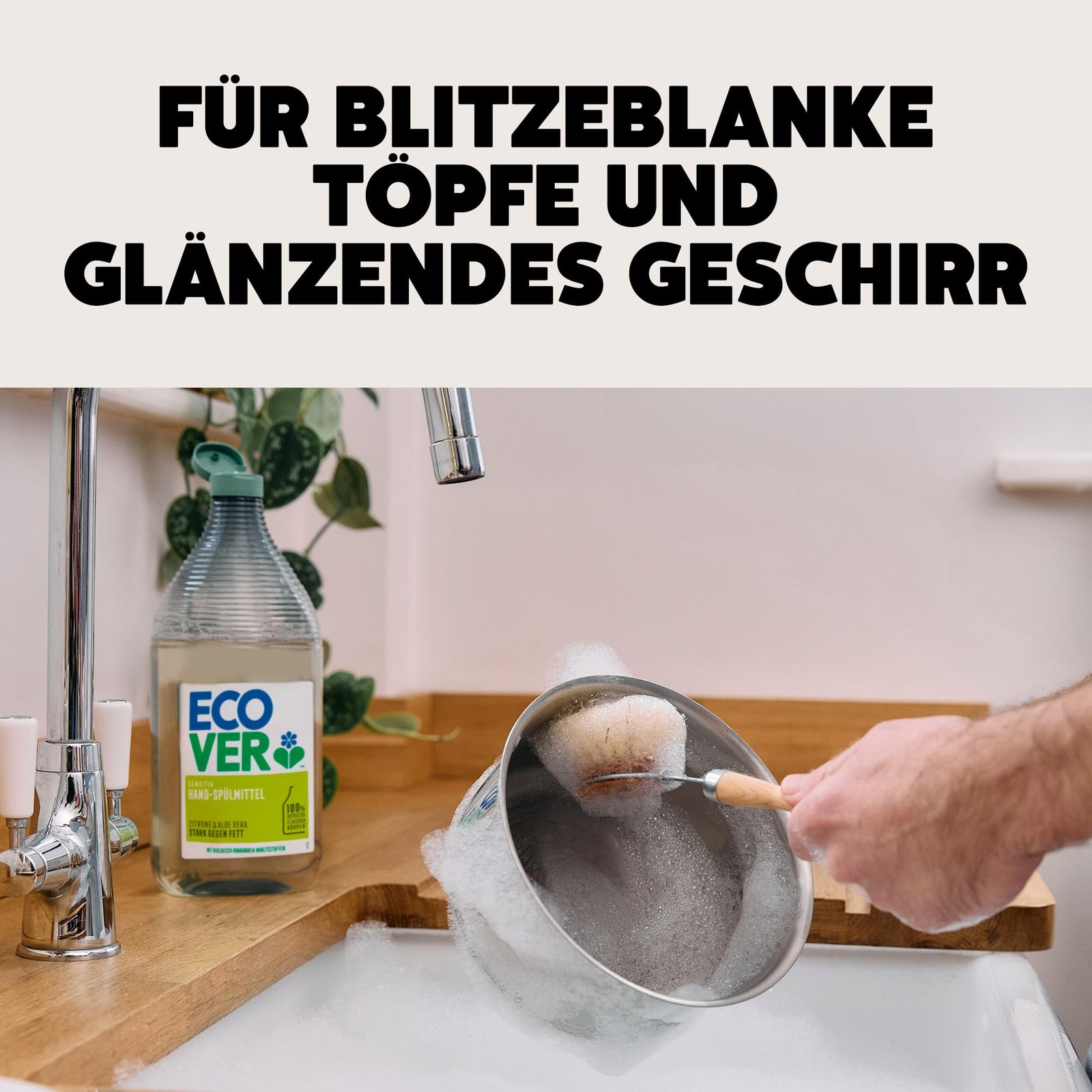 Sauberes Geschirr – Mit seinen kraftvollen, natürlichen Zuckertensiden reinigt und entfettet das Geschirrspülmittel gründlich und sorgt für Geschirr mit strahlendem Glanz|Saubere Lösung – Die reinigende Formel ist vegan friendly, da pflanzenbasiert, mit diesen Inhaltsstoffen auf pflanzlicher Basis ist das Spülmittel biologisch abbaubar*|Kraftvoll & sanft – Der Reiniger ist wirksam gegen Fett und Schmutz, duftet frisch nach Zitrone & Aloe Vera und ist sanft zur Haut, er wurde dermatologisch getestet auf empfindlicher Haut|Saubere Verpackung – Die nachhaltige Spüli Flasche besteht zu 100 % aus recyceltem Plastik (PCR), der Verschluss besteht zu 50 % aus PCR, beides ist zu 100 % recycelbar|Lieferumfang – Ecover Spülmittel Zitrone & Aloe Vera (450 ml), ökologisches Geschirrspülmittel mit pflanzenbasierten Inhaltsstoffen, mit vegan-freundlicher Formel, Artikelnummer: 4004015
