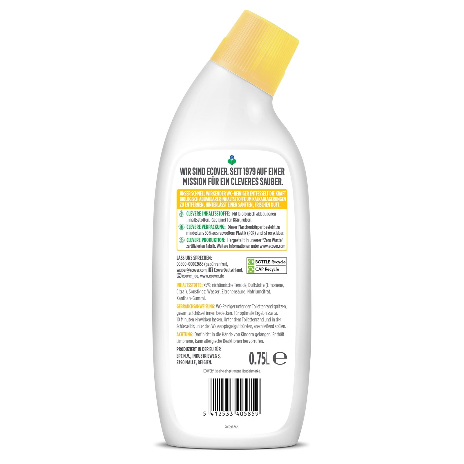 Ecover Toilettenreiniger, entfernt Kalkablagerungen und Verschmutzungen, kraftvoller Citrusduft für hygienische Sauberkeit, 1 Pack