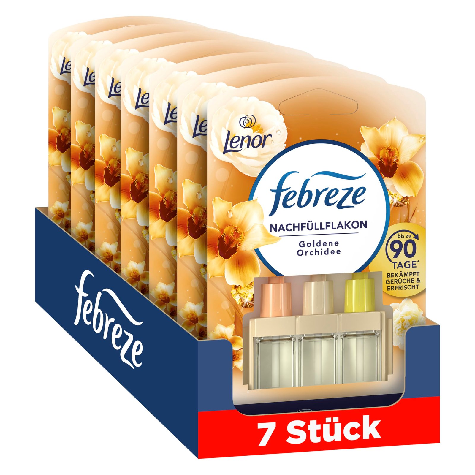 Febreze 3Volution Lenor Goldene Orchidee Duftstecker Nachfüllflakon 7×20 ml, 3 Wechselnde Düfte zum Bekämpfen von Gerüchen