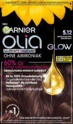 Haarfärbe-Set für überwältigend intensive Farbkraft: Permanente Haarfarbe mit 60% pflegenden Ölen und ohne Ammoniak in schillerndem Samtbraun|Ergebnis: Komplette Grauhaarabdeckung, langanhaltendes, intensives und glänzendes Farbergebnis sowie sichtbar verbesserte Haarqualität|Anwendung ohne Tropfen: 1. Färben der Haare mit pflegender Creme Farbe 2. Auswaschen nach 30 Minuten Einwirkzeit 3. Intensive Pflege mit Seide & Glanz Pflegekur|Anti-Tropf-Formel angereichert mit natürlichen Blumenölen, Samtige und blumig duftende Creme-Textur für angenehme Anwendung und geschmeidiges Gefühl|Lieferumfang: 1x Garnier Olia Dauerhafte Coloration, inkl. Colorations-Creme, Entwickler-Creme, Haarkur, Einmalhandschuhe, 1x Gebrauchsanweisung, Farbe: 5.12 Schimmerndes Samtbraun
