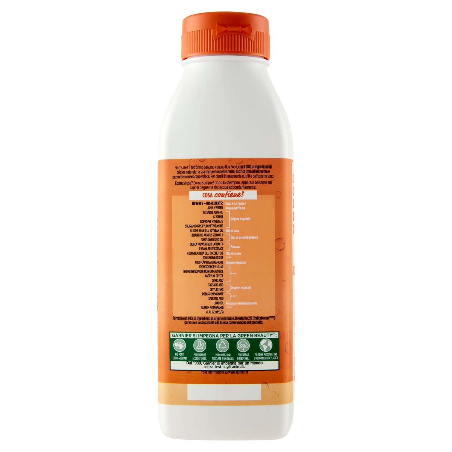 Balsamo districante e riparatore con estratto di papaya, ideale per capelli danneggiati|Per capelli intensamente nutriti, rivitalizzati e senza nodi, Per una chioma più forte e brillante, non appesantita|Consigli per l’uso: applica sui capelli bagnati dopo lo shampoo e risciacqua|Formula ultra-leggera con il 98% di ingredienti di origine naturale e senza siliconi, Nutre e addolcisce i capelli avvolgendoli in una dolce fragranza|Contenuto: 1x Balsamo Hair Food Garnier, Papaya Riparatrice, Formula di origine naturale al 98% e senza siliconi, 350 ml|Balsamo districante e riparatore con estratto di papaya, ideale per capelli danneggiati|Per capelli intensamente nutriti, rivitalizzati e senza nodi, Per una chioma più forte e brillante, non appesantita|Consigli per l’uso: applica sui capelli bagnati dopo lo shampoo e risciacqua|Formula ultra-leggera con il 98% di ingredienti di origine naturale e senza siliconi, Nutre e addolcisce i capelli avvolgendoli in una dolce fragranza|Bitte überprüfen Sie das PAO-Symbol (Periode After Opening), das die Verfallszeit des Produkts angibt, nachdem Sie die Packung geöffnet haben|Contenuto: 1x Balsamo Hair Food Garnier, Papaya Riparatrice, Formula di origine naturale al 98% e senza siliconi, 350 ml