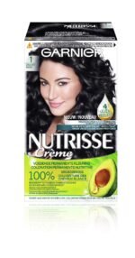 Garnier Nutrisse ist eine permanente Haarfärbung, angereichert mit pflegenden Fruchtölen (u.a|Avocado- und Traubenkernöl), dass das Haar gleichzeitig nährt und färbt.|Inhalt: 1 Set|Einfach zu bedienen