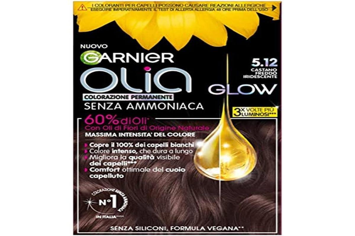 Garnier Olia Glow Permanente Haarfarbe mit Blütenölen natürlichen Ursprungs, leichter und angenehmer blumiger Duft, samtige Creme, die nicht tropft, ultra-sensorische Anwendung|Für eine langanhaltende, intensive Farbe, deckt 100% weißes Haar ab, weicheres und glänzendes Haar, optimaler Komfort der Kopfhaut|Anwendungsempfehlung: Auf die Bereiche auftragen, wo das Haar weißer ist, 30 Minuten einwirken lassen, mit warmem Wasser abspülen und den Glanz & Seide Conditioner auftragen, 48 Stunden vor Gebrauch den Allergietest durchführen|O.D.S-Technologie: Färbung aus 60 % Ölen, die die Farbe im Inneren der Haarfaser infundieren, vegane Formel, ohne Silikone, ohne Ammoniak|Inhalt: 1 x Garnier Olia Glow Haarfarbe, Farbe: Dunkelbraun, schillernd, das Set beinhaltet: 1 x Detektor, 1 x Farbtube und 1 x Balsam Licht & Seide ohne Silikone