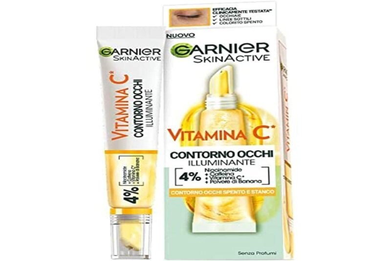 Beleuchtende Augenkontur mit Vitamin-C-Derivat für eine aufhellende und antioxidative Wirkung, klinisch getestet, geeignet für empfindliche Haut|Reduziert die Anzeichen von Müdigkeit und sorgt für ein frischeres und ausgeruhteres Aussehen. Für eine strahlendere Augenkontur und einen ebenmäßigeren Teint|Tragen Sie kleine Mengen Creme um die Augen auf, tupfen Sie sie mit den Fingern ein und massieren Sie die Creme ein|Formel mit Niacinamid, Koffein, Bananenpulver und Vitamin-C-Derivat, Formel mit Extrakten natürlichen Ursprungs zur Bekämpfung der 8 Anzeichen von Müdigkeit, parfümfrei|Inhalt: 1x Garnier SkinActive Illuminating Eye Contour, Format: 15 ml