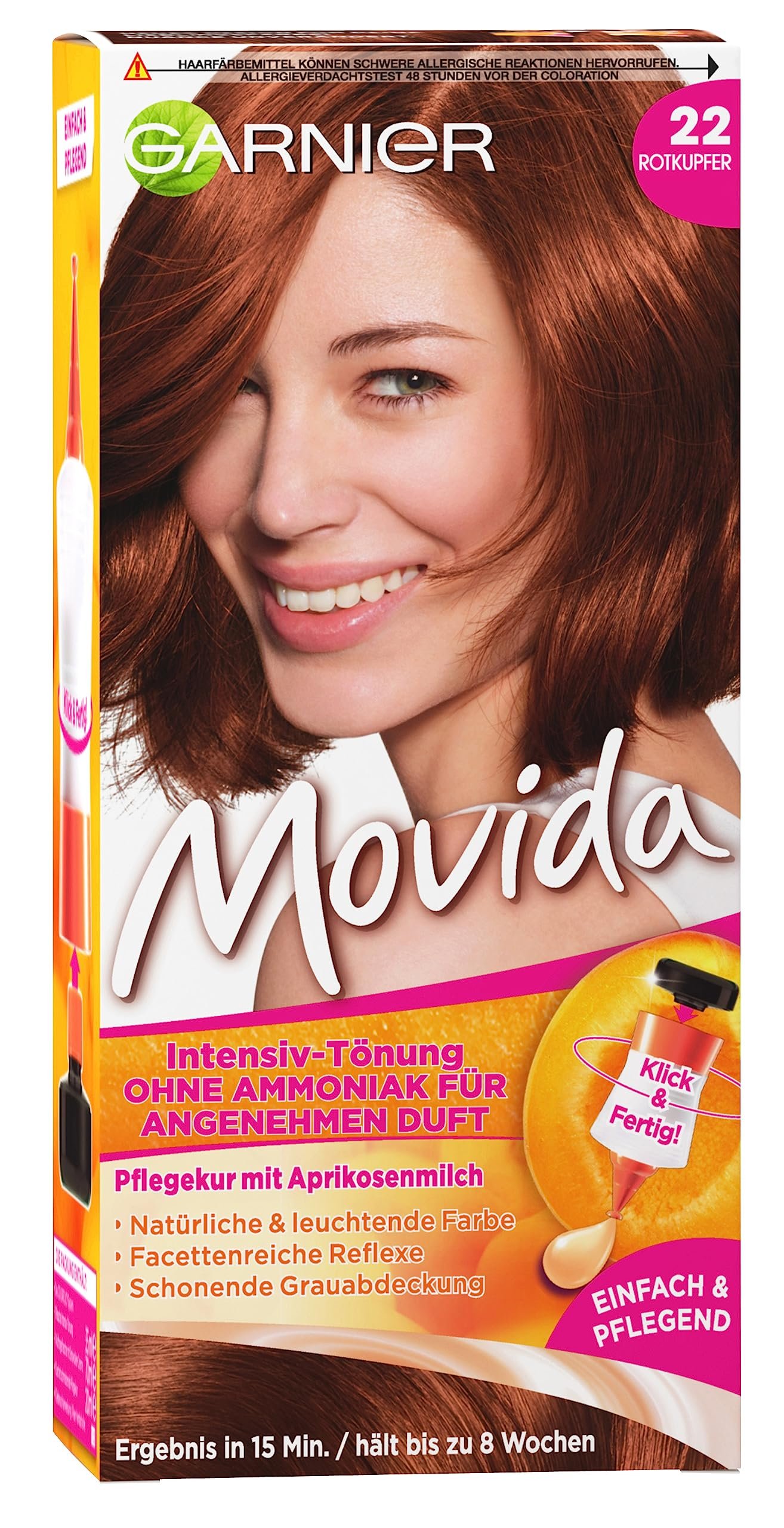 Garnier Tönung, Pflege-Creme, Intensiv-Tönung Haarfarbe, für leuchtende Farben, auch für graues Haar, ohne Ammoniak, Movida, 22 Rotkupfer, 3er Pack