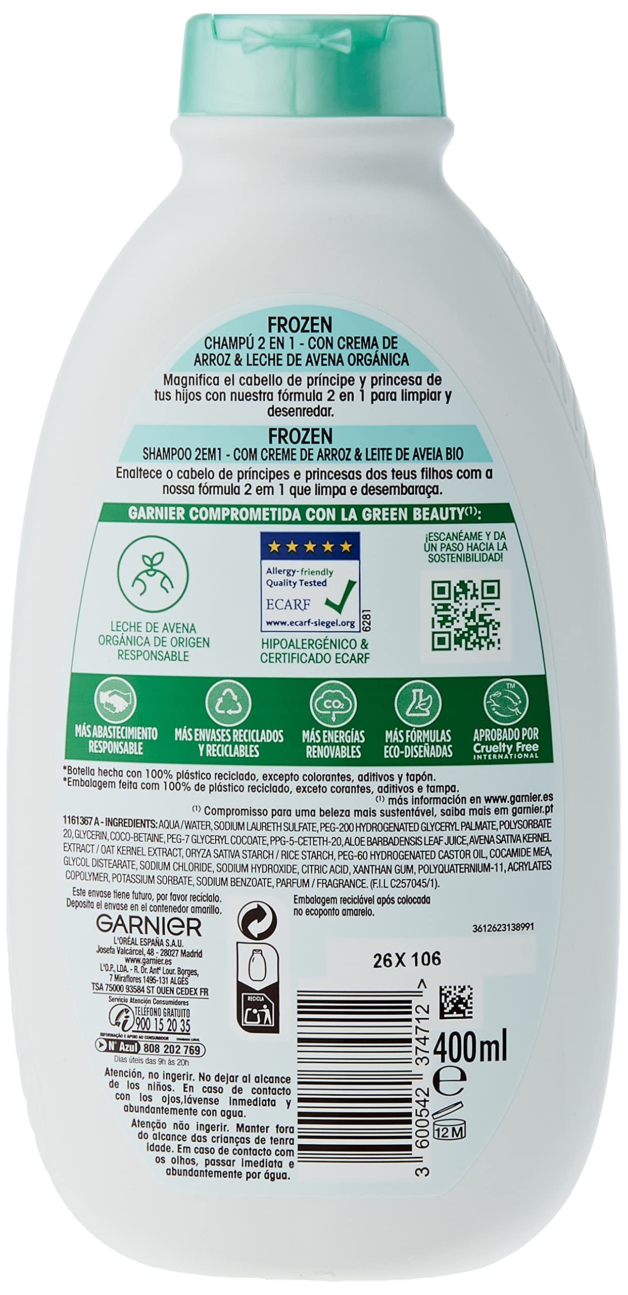 2-in-1-Shampoo für Kinder, hypoallergen, weich, cremig und für den täglichen Gebrauch geeignet|2-in-1-Shampoo für Kinder, spendet Feuchtigkeit und macht die Haut weich|2-in-1-Kindershampoo, unter pädiatrischer Kontrolle getestet und hypoallergen|Von der Marke Garnier Ursprüngliche Heilmittel