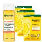 Garnier Vitamin C Liquids Aufhellende Gesichtsbehandlung, vegane Formel, 120 ml und 3 Gesichtsmasken aus aufhellendem Stoff