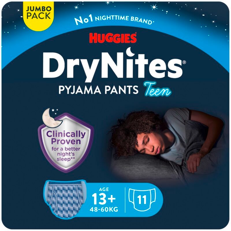 Huggies DryNites Nachtwindeln für Kinder, 13+ (48-60 kg), klinisch getestet, mit 5 Schichten für maximalen Nachtschutz, 11 saugfähige Unterhosen