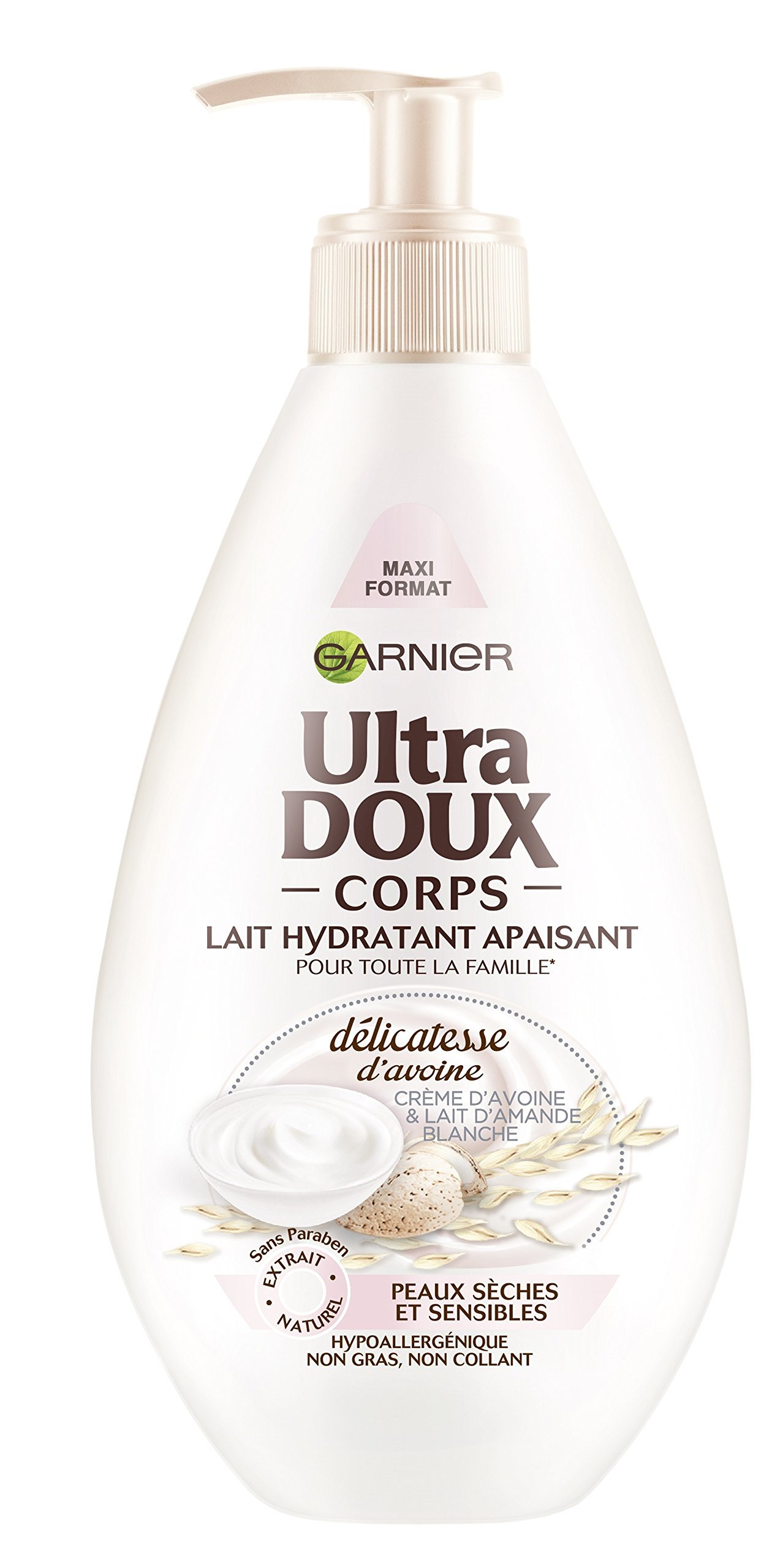 400 ml|Garnier|- Milch feuchtigkeitsspendend beruhigend Feinheit Hafer Garnier|Cremes & Milchschorfs|In seiner neuen beruhigende Rezept für die empfindliche und trockene Haut der ganzen Familie *, Garnier Ultra weich hat die weicher Zutaten: Die Creme von Hafer, Getreide mit Meilen Tugenden bekannt für seine feuchtigkeitsspendende Eigenschaften der Mandelmilch weißer, anerkannt seit Tausenden von Jahren für glättet und beruhigt die Haut.