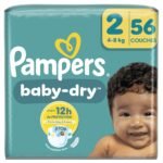 Pampers Baby-Dry Große 2, 56 Windeln, 4 kg – 8 kg, eine bequeme Nacht bis zu 100% ohne Auslaufen