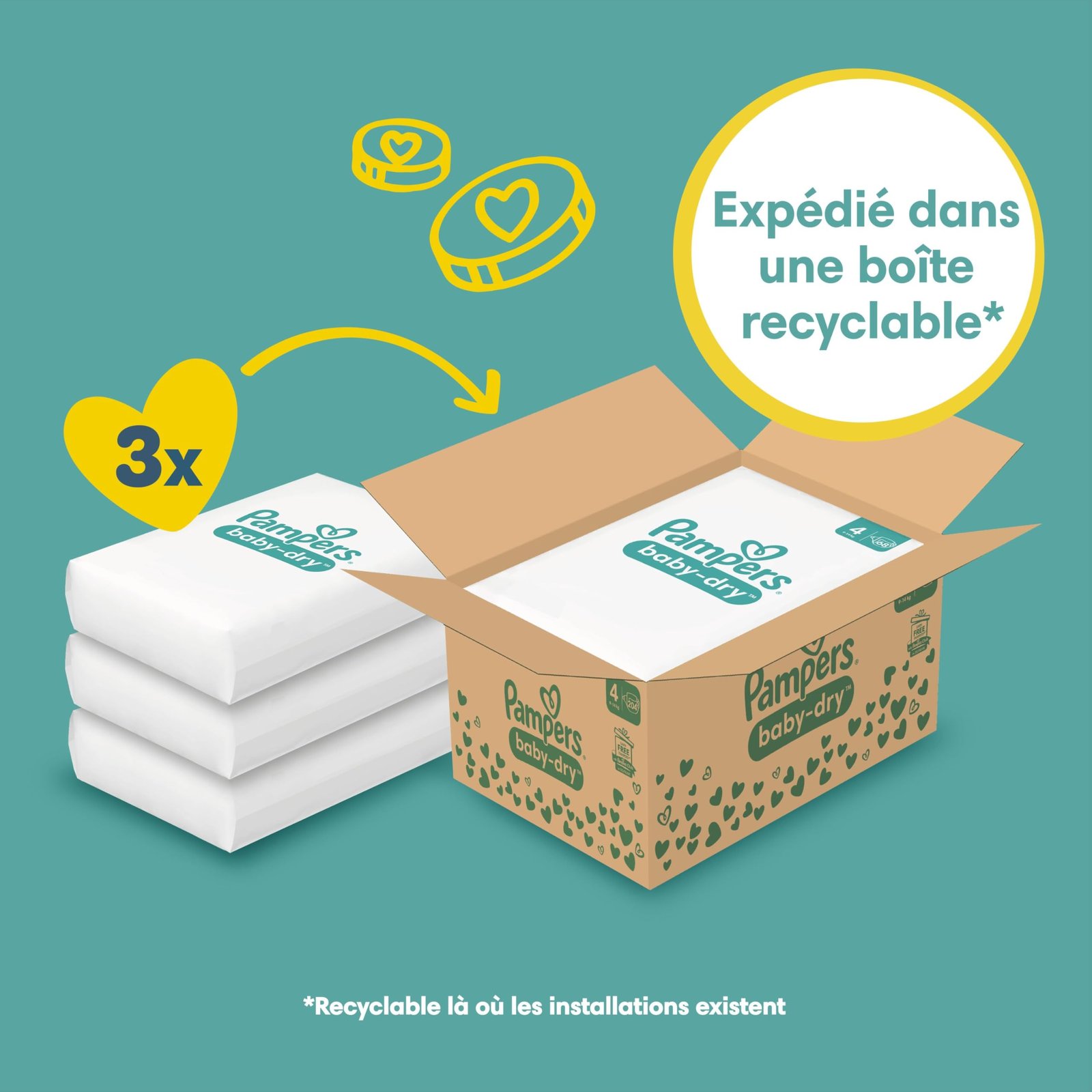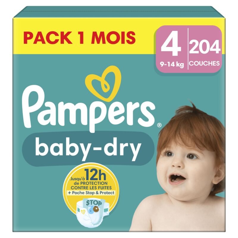 Pampers Baby-Dry Große 4, 204 Windeln, 9kg-14kg, Bis zu 100% Auslaufschutz & Komfort die ganze Nacht