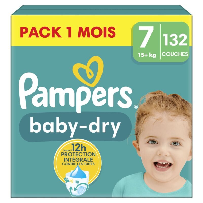 Pampers Baby-Dry Große 7, 132 Windeln, 15kg+, Bis zu 100% Auslaufschutz & Komfort die ganze Nacht