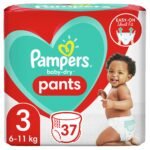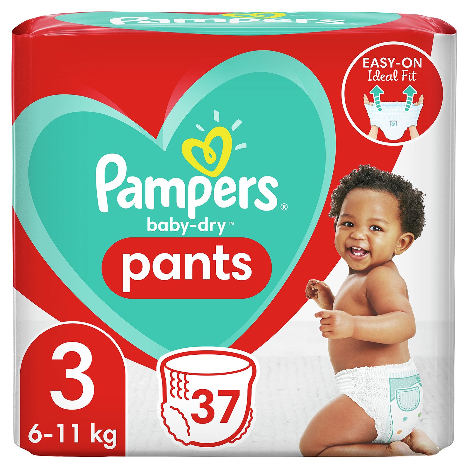 Pampers Baby-Dry Pants 3, 37 Höschenwindeln, Einfaches An- und Ausziehen, Zuverlässige Pampers Trockenheit, 6kg – 11kg