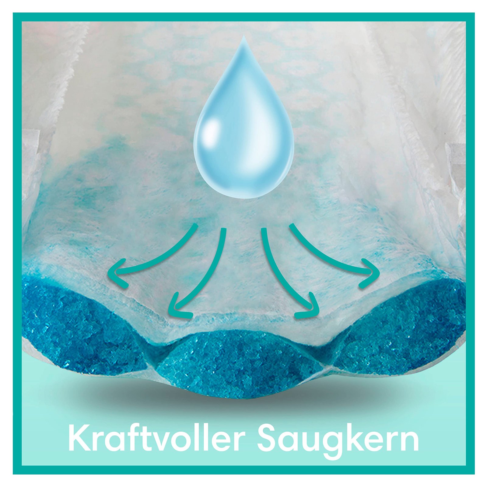 Das einzigartige 3-fach-Schutz-System sorgt für bis zu 12 Stunden Rundum-Auslaufschutz; HINWEIS: Auf der Unterseite der Verpackung ist das Herstellungsdatum angegeben, nicht das Verfallsdatum|Windeln mit einzigartiger Schutzlage für schnelle Absorption|Super saugfähiger Kern, der die Flüssigkeit einschließt|Sicherheitsbündchen helfen, ein Auslaufen rundum die Beinchen zu verhindern|Die Flexi-Seitenflügel passen sich angenehm an das Bäuchlein deines Babys an und sorgen für eine sichere Passform|0% EU-Parfümallergene (gemäß EU-Kosmetikverordnung Nr. 1223/2009)|Getestet und zertifiziert gemäß Standard 100 von Oekotex|Coole Designs zeigen dir die Windelvorder- und Rückseite