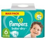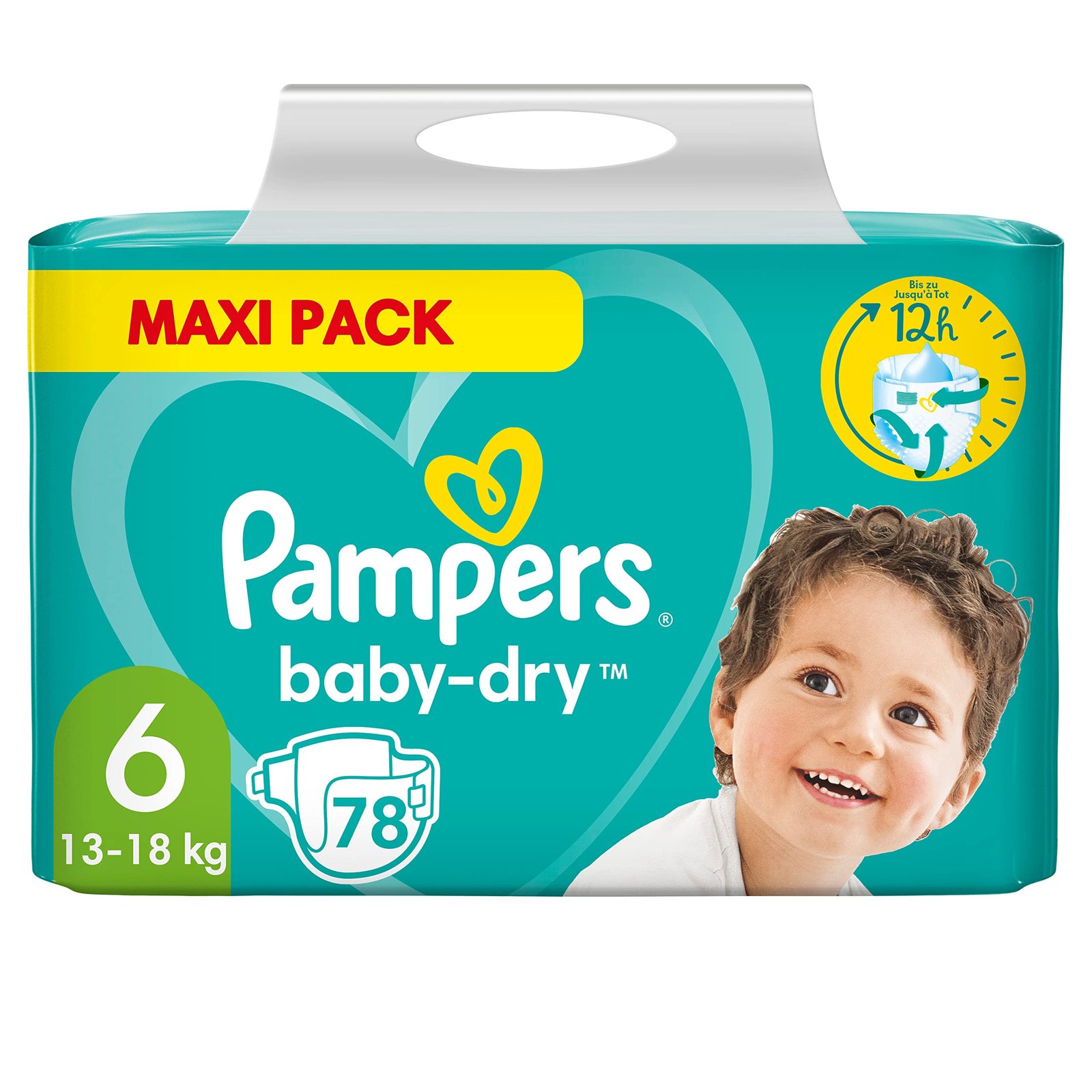 Pampers Baby Windeln Größe 6 (13-18kg) Baby-Dry, Extra Large, 78 Stück, MAXI PACK, bis zu 12 Stunden Rundum-Auslaufschutz