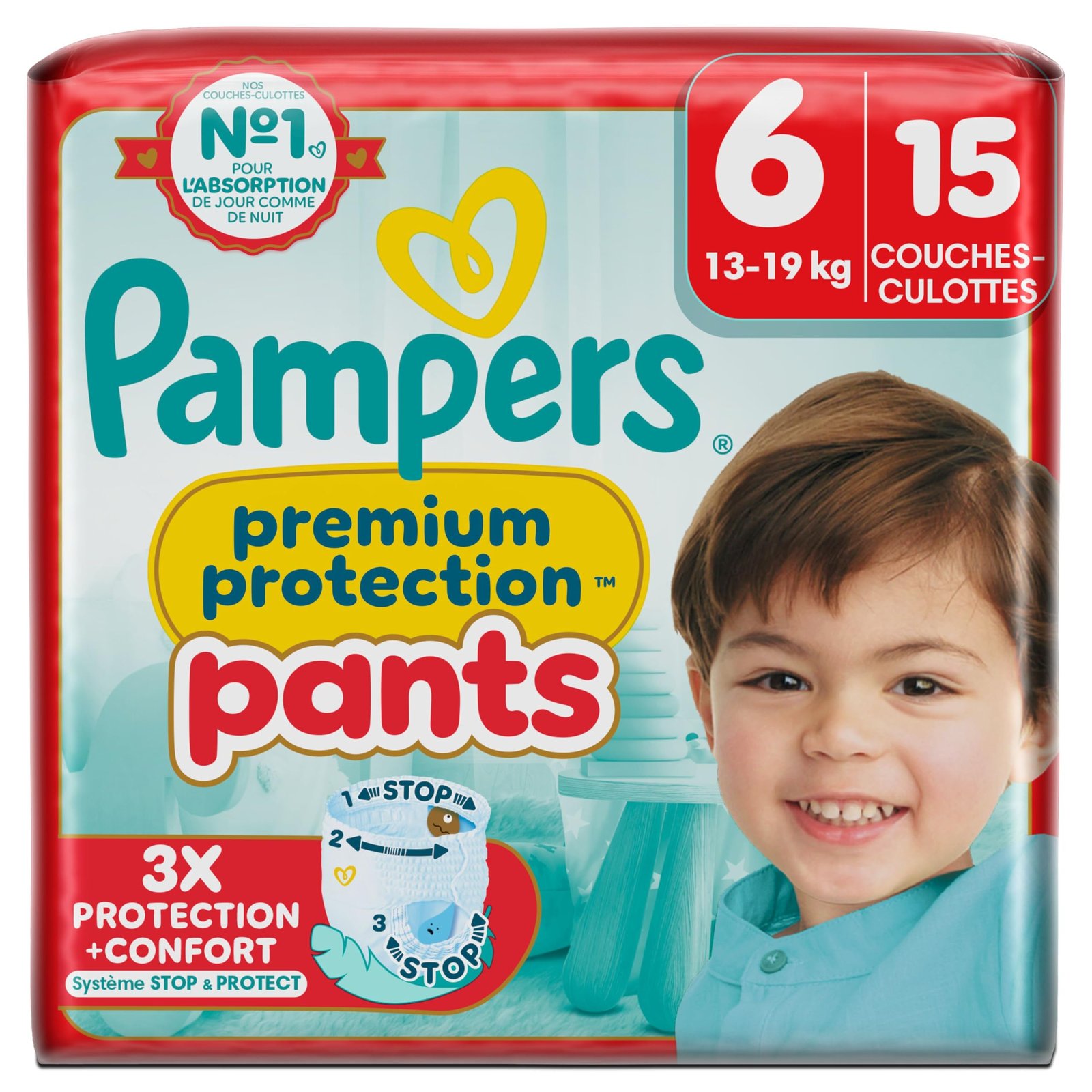 Pampers Premium Protection Pants Gr.6, Single Pack, 13-19kgWenn dein Baby aktiver wird, braucht es eine Windel, die bequem sitzt, zuverlässigen Schutz bietet und jede Bewegung mitmacht. Deshalb bieten Pampers Premium Protection Pants den besten Komfort und Schutz von Pampers gegen Auslaufen: die 2x breiteren*, weichen Bündchen schützen vor roten Druckstellen und Auslaufen, das 360° ultra weiche Bauchbündchen passt sich den Bewegungen deines aktiven Babys an, und das Stop & Schutz Täschchen verhindert Auslaufen am Rücken. Wie all unsere Pants lassen sich auch Pampers Premium Protection Pants leicht wechseln, selbst wenn dein Baby sich bewegt: Zum Anziehen hochziehen, zum Ausziehen die Seitenbündchen aufreißen, einrollen und einfaches Entsorgen dank Klebestreifen. Genau wie für dich steht die Sicherheit deines Babys auch für Pampers an erster Stelle: Pampers Premium Protection Pants sind dermatologisch getestet und enthalten 0% EU-Parfümallergene (gemäß EU-Kosmetikverordnung Nr. 1223/2009). Sie sind von Dermatologen der Skin Health Alliance bestätigt und gemäß STANDARD 100 von OEKO-TEX getestet und zertifiziert. Möchtest du mehr über die Bestandteile unserer Produkte erfahren? Besuche uns auf pampers.de, pampers.at und pampers.ch. *vs. vorher.Produkteigenschaften:-Komfort-Fit zum Schutz der Haut deines Babys vor roten Druckstellen und Auslaufen-2x breitere*, weiche Bündchen helfen, Auslaufen rundum die Beinchen zu verhindern (*vs. vorher)-Stop & Schutz Täschchen hilft, Auslaufen am Rücken zu verhindern-360° ultra weiches Bauchbündchen passt sich den Bewegungen deines aktiven Babys an-Mit einem super saugfähigen Kern, der Flüssigkeit sofort absorbiert-Einfaches Windelwechseln: zum Anziehen hochziehen, zum Ausziehen die Seitenbündchen aufreißen, einrollen und dank Klebestreifen einfach entsorgen-Skin Health Alliance bestätigt, dass Pampers Pants bei Kontakt mit Babyhaut sicher sind-Mit Pampers Feuchttüchern verwendenAdresseProcter & Gamble Service GmbH, Su