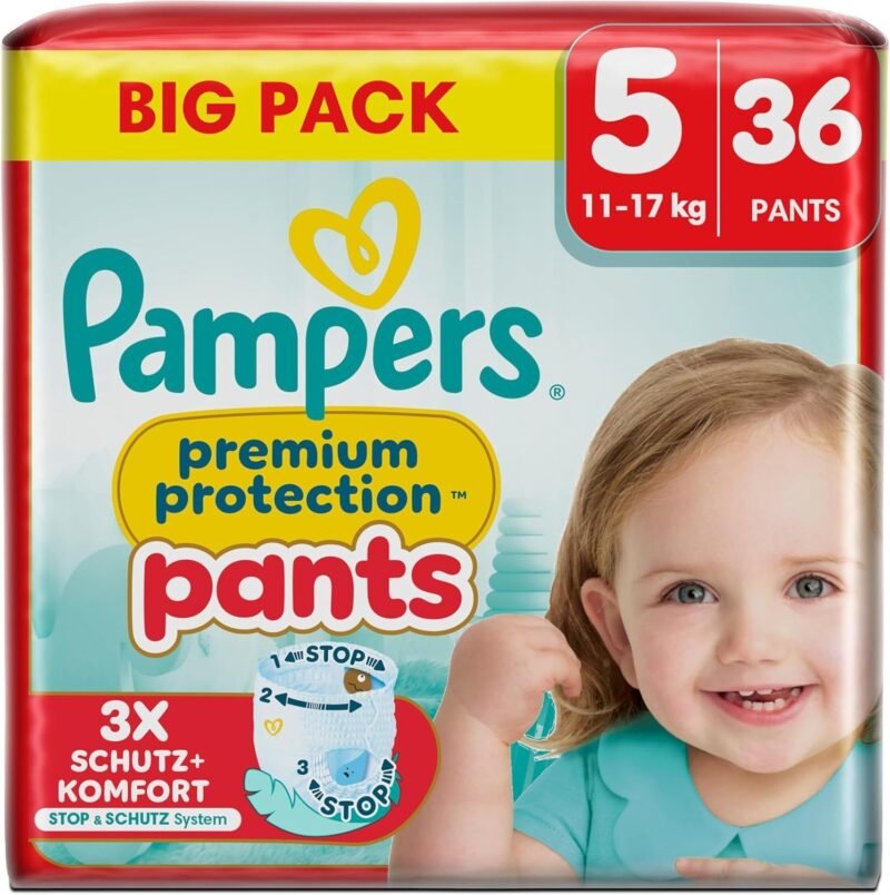 Pampers Premium Protection Pants Große 5, 36 Windeln, 11kg-17kg, Mit 360° Passform und 2x breiteren Bündchen als vorher für unseren besten Komfort & Schutz