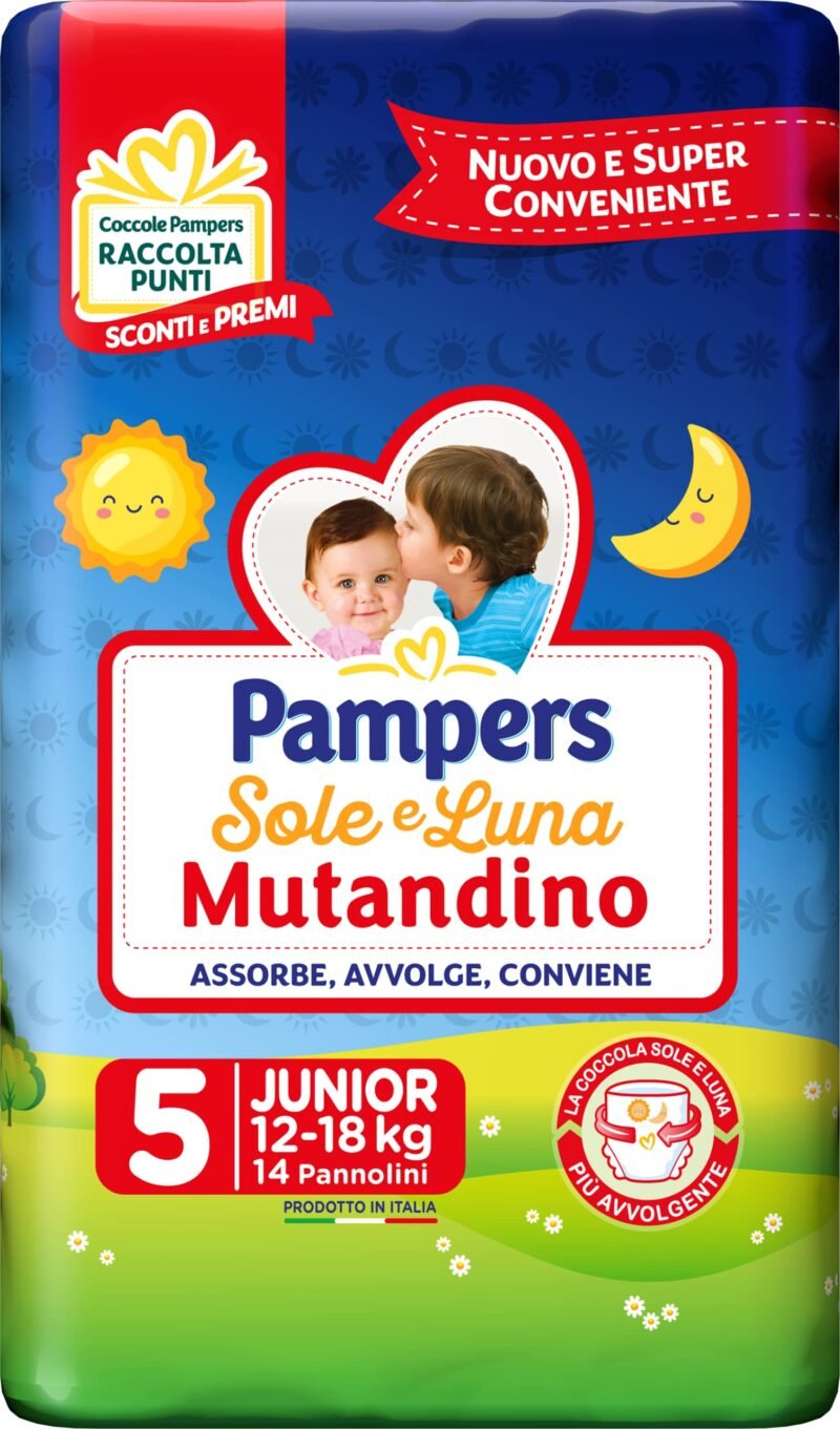 Günstige Pampers Panty mit Windeln Sole&Luna|Ausgestattet mit einem um 360 Grad umwickelbaren elastischen Band bietet es Ihrem Baby die Bewegungsfreiheit beim Laufen und Spielen an|Lässt sich wie ein Höschen tragen und dank praktischer Seitenöffnung schnell wieder abnehmen|Sole&Lune Höschen vereinen dank saugfähiger Mikrogranulate den trockenen Komfort von Babydry