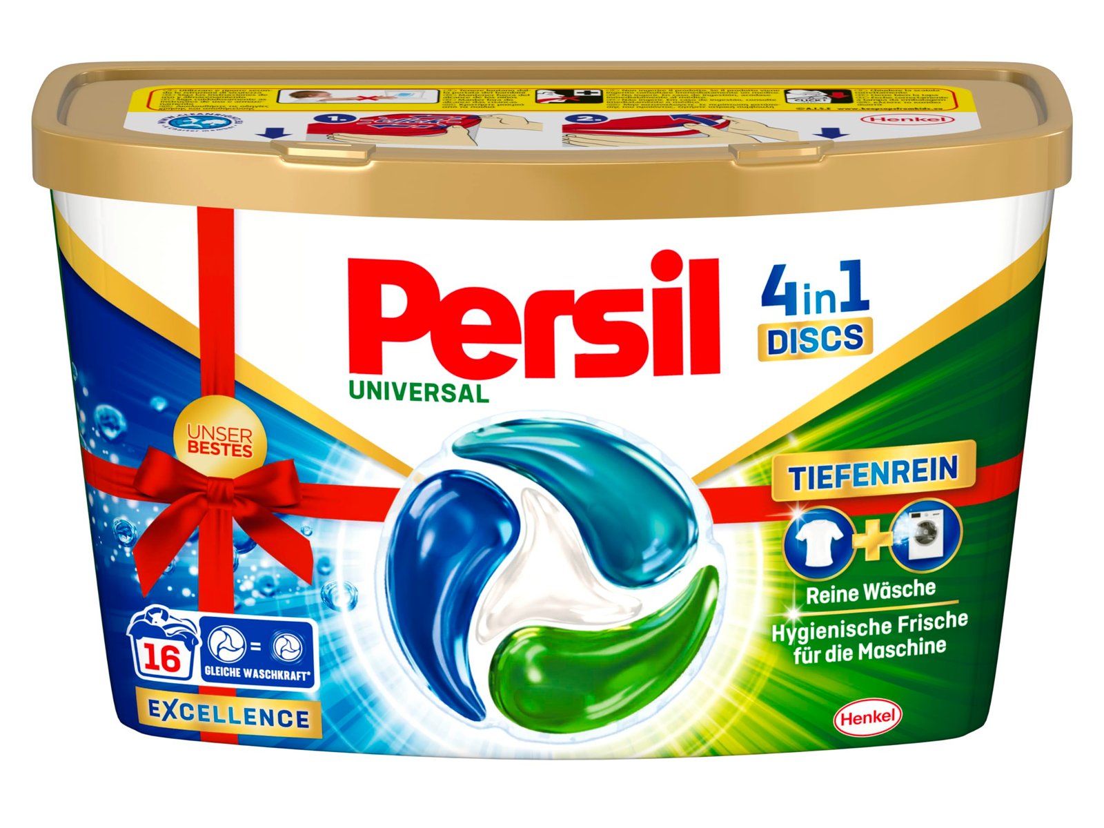 Persil Universal 4in1 DISCS (16 Waschladungen), Universal Waschmittel mit Tiefenrein Technologie, Vollwaschmittel für reine Wäsche und hygienische Frische für die Maschine