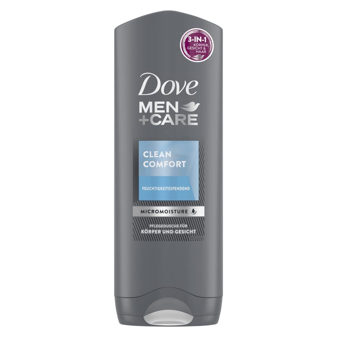 Duschbad mit innovativer Hydration Booster-Technologie, die der Haut intensiv Feuchtigkeit spendet|Dove Men+Care 3-in-1 Pflegedusche Clean Comfort für Körper, Gesicht und Haar mit milder Formel und einem frischen, reinen Duft