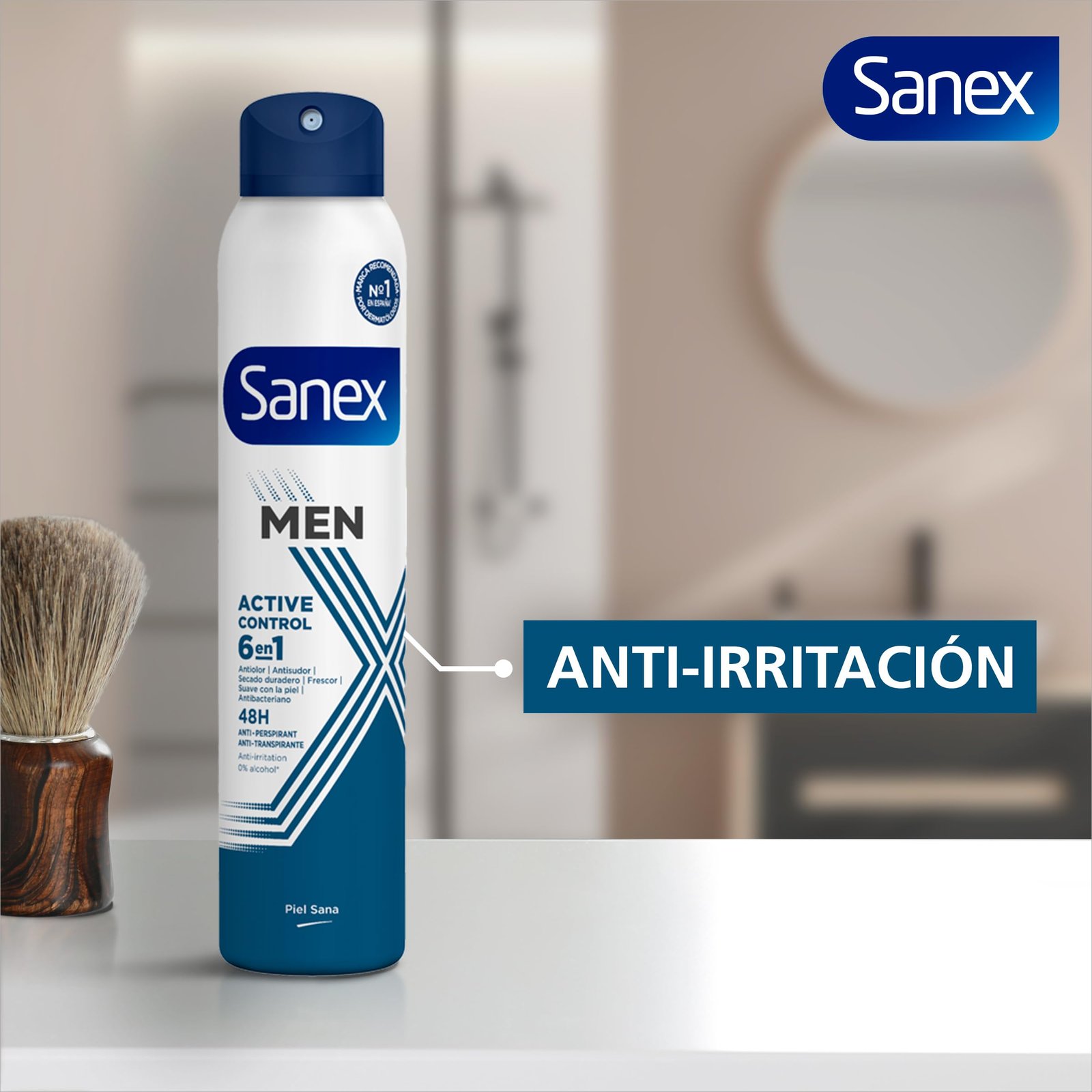 Sanex Men Active Control Deospray für Männer, 6er Pack (6 x 200 ml) 48H Schutz, Anti-Transpirant, Anti-Reizung, 0% Alkohol, Bekämpfung von schlechtem Geruch, langanhaltend
