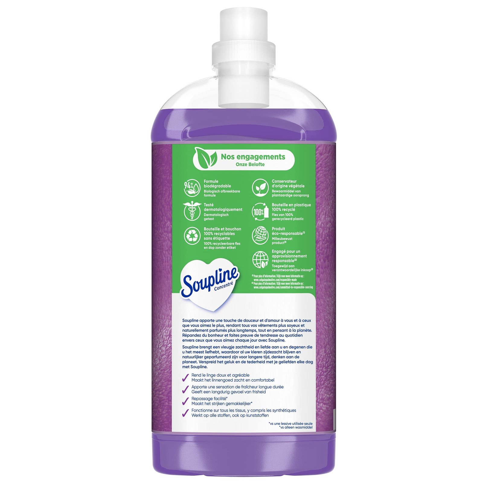 Eine weiche und angenehme Wäsche: Mit dem Weichspüler für Wäsche von Soupline genießen Sie den ganzen Tag unglaublich weiche Kleidung mit Lavendelduft für ein intensives Wohlgefühl überall dort, wo Sie hingehen|Pflege: Die Verwendung des Weichspülers Soupline fördert das Glätten von Textilien und damit das Bügeln für pflegeleichte Wäsche und sorgt für eine längere Schönheit|Hergestellt aus der Produkte: Weichkonzentrat bietet maximale Effizienz mit einer kleineren Menge an Produkt und einer biologisch abbaubaren Formel, die in einer 100 % recycelten Kunststoffflasche verpackt ist|Gebrauchsanweisung: Fügen Sie zusätzlich zu Ihrem Waschmittel eine Portion Weichspüler-Konzentrat in das Weichmacher Ihrer Maschine oder dem letzten Spülwasser hinzu. Nicht direkt auf die Wäsche geben|Die Bonheur ist in der Nähe des Weichmachers : Soupline ist eine französische Marke, die eine breite Palette von Weichmacher-Produkten für Textilien anbietet, die sanft die Wäsche parfümieren und sie für eine endlose Weichheit sorgen|Hergestellt in Frankreich