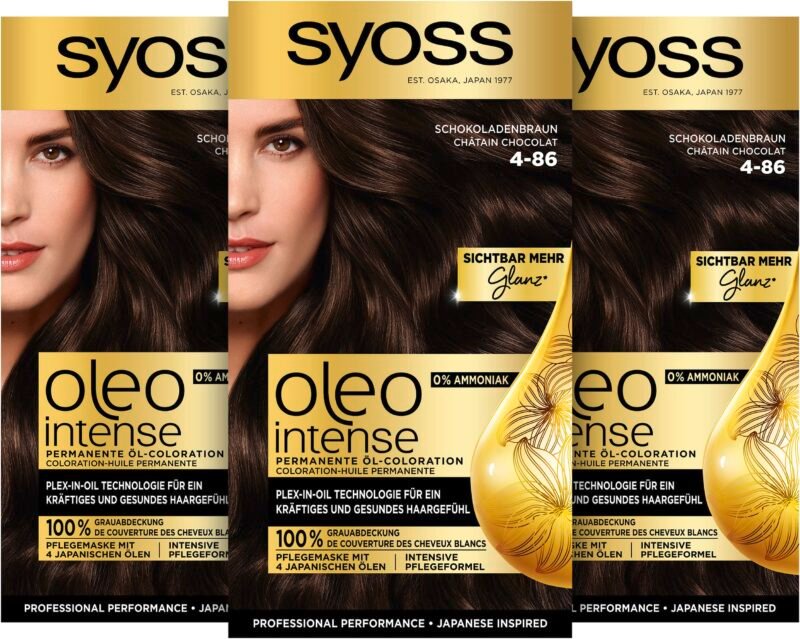 Syoss Oleo Intense Öl-Coloration 4-86 Schokoladenbraun Stufe 3 (115 ml), dauerhafte Haarfarbe mit pflegendem Öl, Coloration ohne Ammoniak