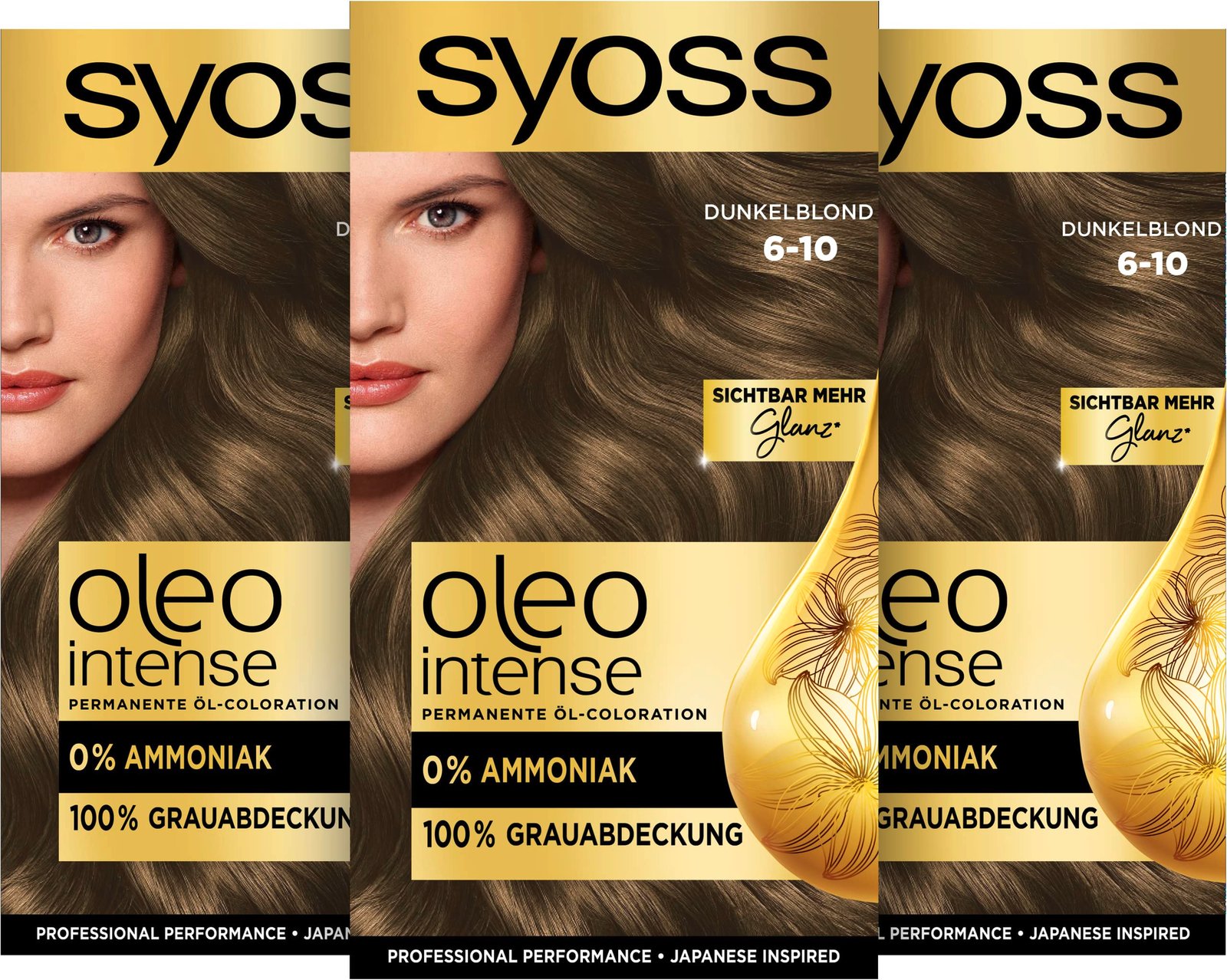 Syoss Oleo Intense Öl-Coloration 6-10 Dunkelblond Stufe 3 (115 ml), dauerhafte Haarfarbe mit pflegendem Öl, Coloration ohne Ammoniak