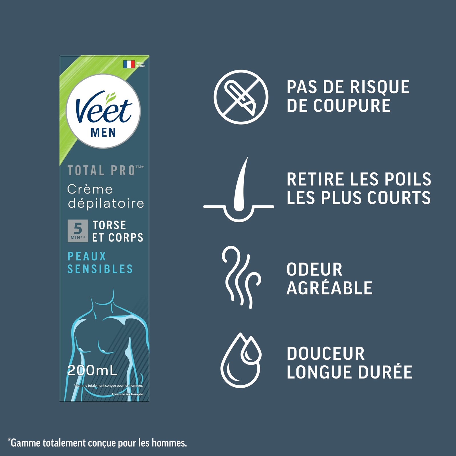 Veet Men – Crème Dépilatoire Homme – Peaux Sensibles – 200 ml