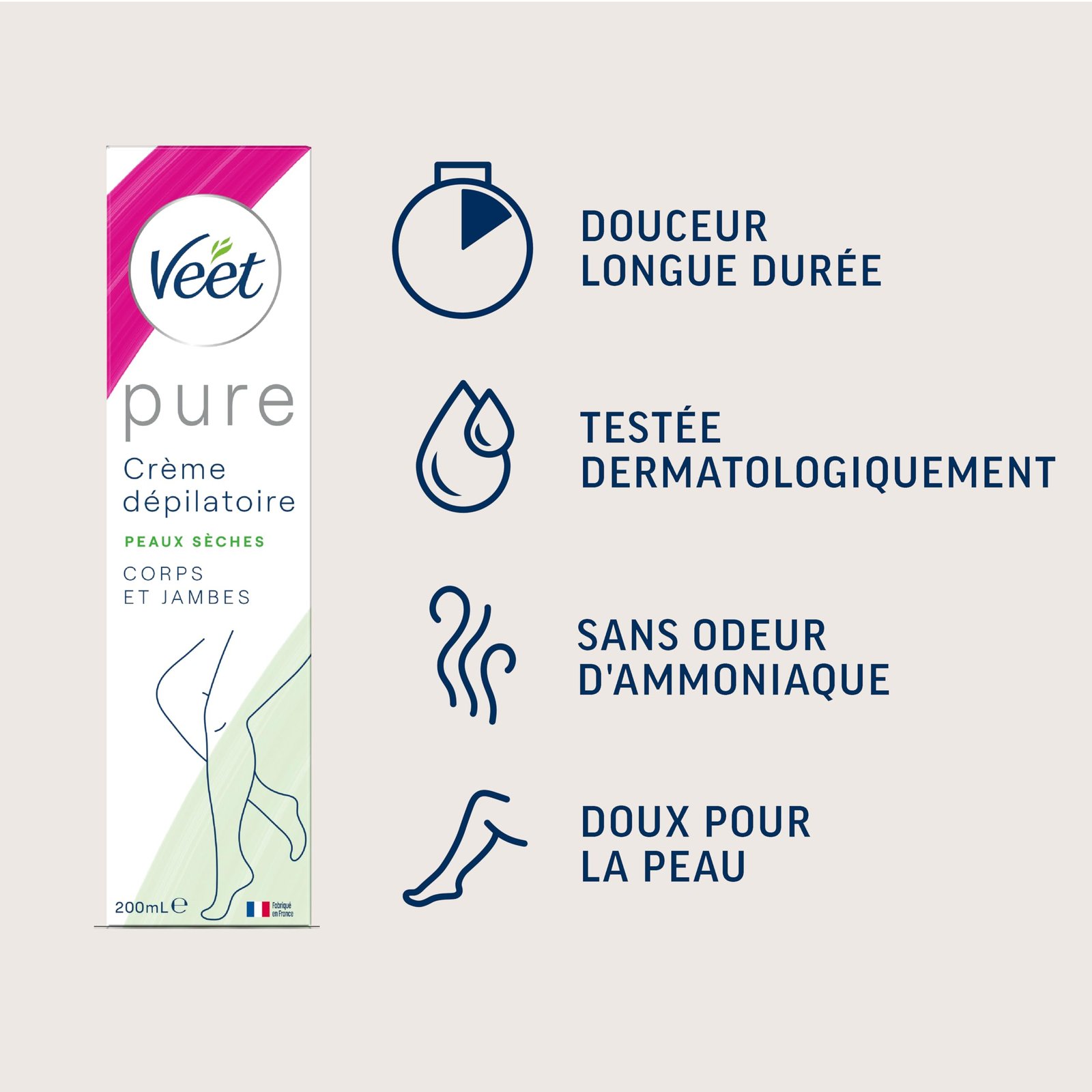 Veet Minima Pure Enthaarungscreme für trockene Haut, 3 Tuben mit je 200 ml